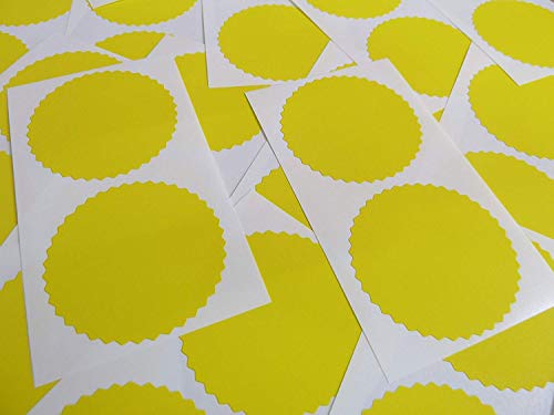 Etichette adesive con bordo seghettato, 50 mm, gialle per certificati, per goffratura, premi e premi