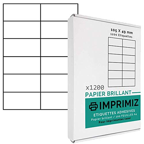 Etichette adesive multiuso A4-105 X 49,5 mm - Colore Bianca Lucida - 1200 Etichette / 100 fogli - Per stampanti Laser