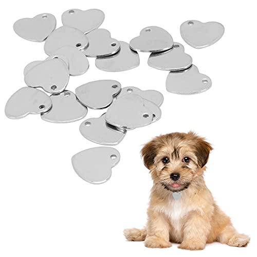 Etichette per animali domestici fai da te, 20 targhette per cani personalizzate in acciaio inox, per animali domestici (acciaio a forma di cuore, 13 x 14 mm, 20 pezzi)