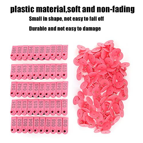Etichette Auricolari per Bestiame da 100 Pezzi, Etichette per Etichette Auricolari Numerate per L'identificazione degli Animali 001-100 per Bovini, Capre, Pecore, Maiali(Rosa)