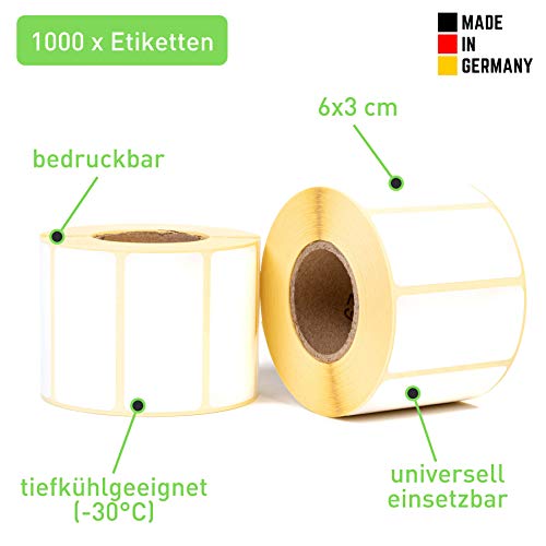 1000 etichette autoadesive (60 x 30 mm bianco) - Etichette adesive da scrivere - per bicchieri, marmellate, barattoli e sacchetti - Etichette per congelatore (-30°)