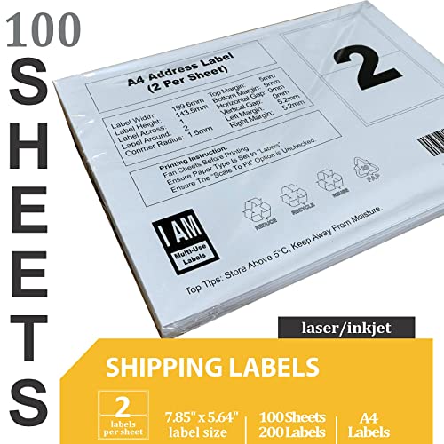 Etichette autoadesive A4 per indirizzo postale, per inchiostro, stampanti a getto laser e fotocopiatrici, 2 etichette per foglio, 100 fogli, 199,6 x 143,5 mm