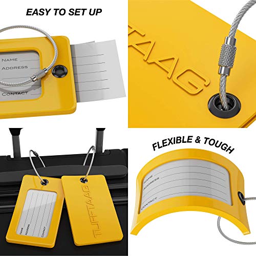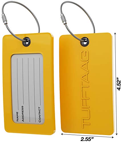 Etichette bagagli TUFFTAAG per biglietti da visita, targhette morbide per valigie (Giallo, x2)