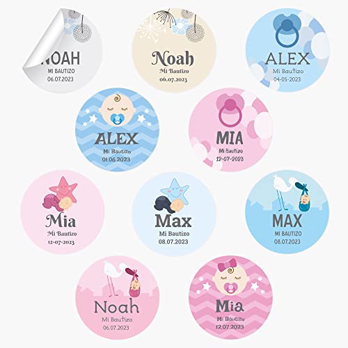 48 Etichette per battesimo personalizzate | Adesivi personalizzati per battesimo rotondi - Stikets