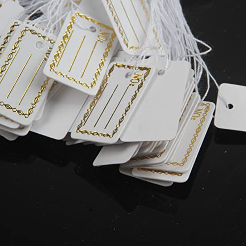 300 etichette in cartoncino con filo, dimensioni, ideali per indicare il prezzo di gioielli o bigiotteria (27 x 16 mm, oro bianco)