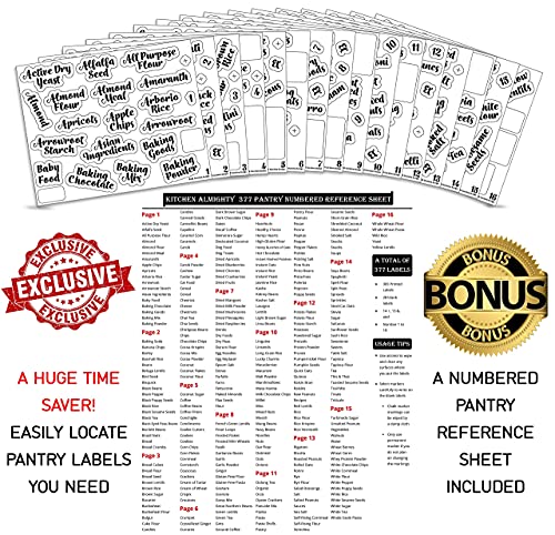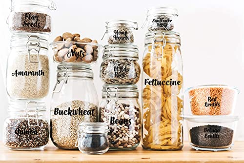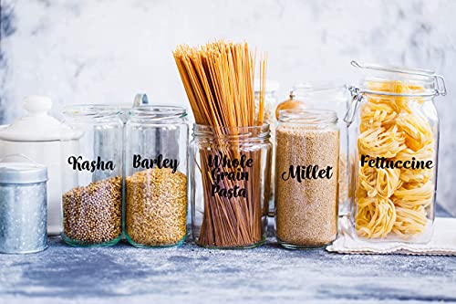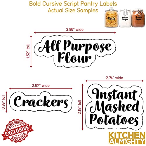 Etichette dispensa: 377 Bold Cursive Gloss Clear Prestampato Resistente all'acqua Set completo di etichette per organizzare contenitori, barattoli e contenitori con un adesivo extra write-on