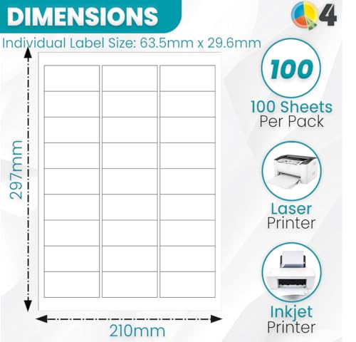 Confezione adatta per etichette con codice a barre autoadesive di Logistica di Amazon. Per getto d'inchiostro o laser. (27 per foglio / 100 fogli)