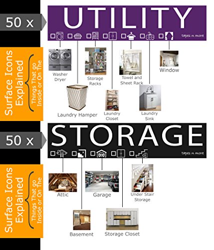 ICONE AMICENTE PER L'UTENTE SU OGNI ETICHE: Ora puoi contrassegnare esattamente ciò che è all'interno di ogni scatola, con icone per praticamente ogni superficie della tua casa e decomprimere di conseguenza. Puoi inserire un'etichetta su ogni porta quando ti sposti nella tua nuova casa e il tuo team in movimento può identificarti per colore e testo.