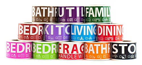 600 etichette in movimento per casa 3 camere da letto. 50 etichette per camera, 12 rotoli di etichette codificate a colori. Etichetta FRAGILE inclusa. Per scatole mobili, mobili, scatole armadio,
