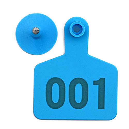 M.Z.A Etichette per orecchio di bovini in plastica Etichette per orecchie in plastica per mucca animale Capra di pecora con numero 001-100 (blu)