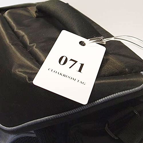 200 etichette prestampate in plastica per la camera dei mantelli e biglietti numerati 001-100, testo nero, con 100 passanti per bagagli.