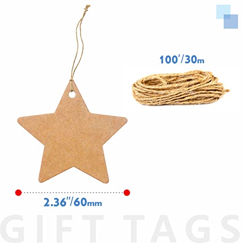 200 etichette regalo artigianali, etichette per confezioni regalo a forma di stella, con 30 metri di spago di iuta naturale, per confezioni artistiche (6 cm di diametro).