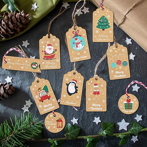 Etichette Regalo,Carta Kraft Etichette,100 Pezzi di Etichette in Carta Kraft Regalo di Natale,Molto Adatte per Pacchi Regalo di Natalizi Fai-Da-Te e Natale Bomboniere