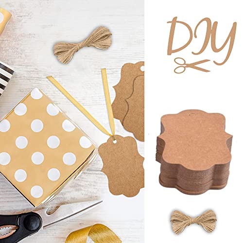 Etichette Regalo, Tag Regalo, Etichette in Carta Kraft, Targhette Carta Kraft, Etichette Regalo di Carta Fai da te, 100 pezzi Tag Regalo con Spago in Juta da 20M per Matrimoni, Compleanni e Natale