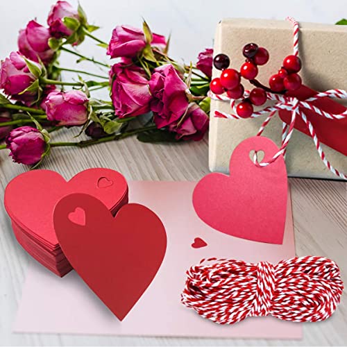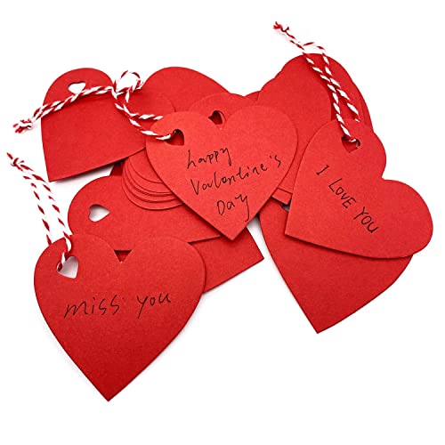 100 etichette regalo a forma di cuore, con corda da 10 m, in carta kraft, adatte per San Valentino, Natale, matrimonio, giorno del Ringraziamento, compleanno, festività (rosso)