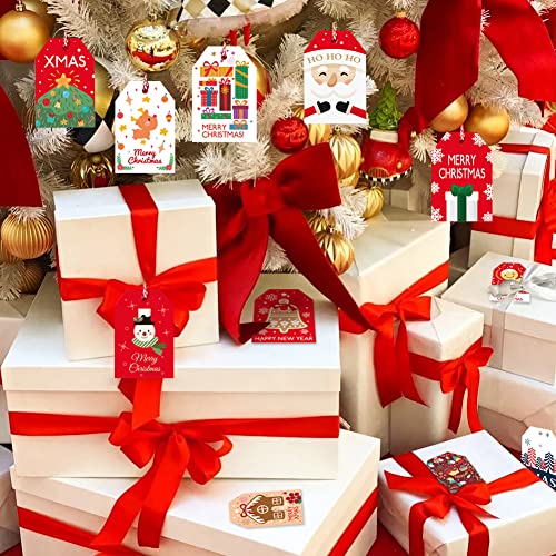 Quantità confezione - 96 pezzi Etichette natalizie per regali in 12 stili, ogni stile per 8 pezzi, più 50 pezzi di corda rossa e bianca e 50 pezzi di corda di canapa naturale per aiutarti ad appendere i tag. Soddisfa le tue molteplici esigenze. Ottimo per la decorazione di confezioni regalo.