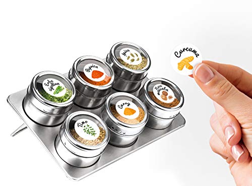 Etichette per spezie in italiano, con illustrazioni colorate, autodesive in PVC lucido, (materiale plastico impermeabile) diametro: 3 cm, 48 pz.