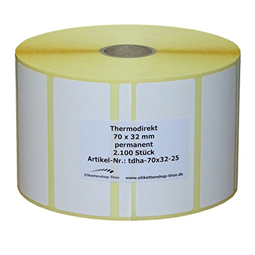 Etichette termiche su rotolo, 70 x 32 mm, 2.100 pezzi, manicotto da 25 mm, permanente, senza BPA