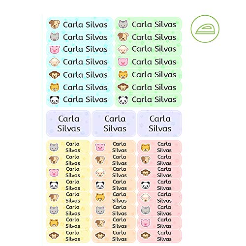 Etichette termoadesive personalizzate con il tuo testo | Etichette per abbigliamento, con disegni di animali e testo personalizzato. 40 U. in foglio laminato FUNNY ANIMALS