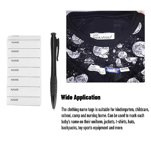 【NON C'È BISOGNO DI TAGLIARE】 Ogni confezione di 200 etichette da stiro per l'asilo e una penna. Abbiamo già eseguito il pre-taglio, larghezza: circa 5,5 cm/2,2 pollici. Abbastanza grande per scrivere nome completo e numero. Naturalmente, puoi anche tagliarlo nella forma che desideri in base alle tue esigenze.