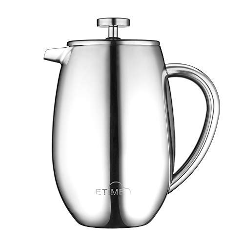 Etime Caffettiera a Pistone French Press Pressofiltro in Acciaio Inox, Caffettiera Francese a Pressione Manuale 8 Tazze con Filtro Riutilizzabile 1 Litro