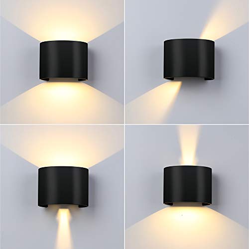 Etime, lampada a LED da parete per esterni e interni, impermeabile, con angolo di illuminazione regolabile, IP65, luce bianca calda, Rund Schwarz 7w, LED 7.0W