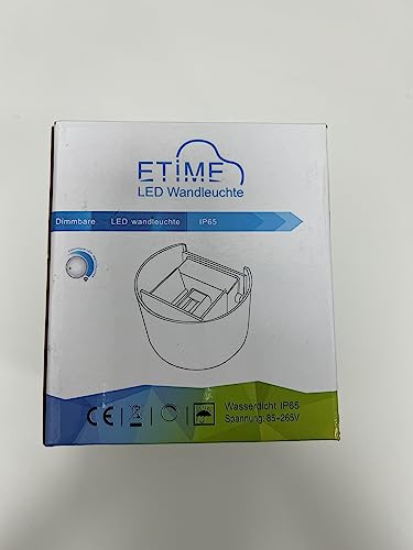 ETiME 13W Lampada da parete per Esternoi e Interni a LED Dimmerabile Applique da parete in Alluminio Impermeabile IP65 con Angolo di Illuminazione Regolabile Decorativo Bianca Calda