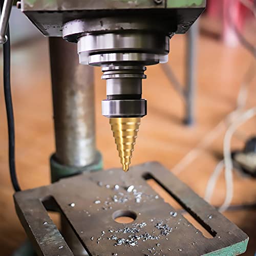 RIVESTIMENTO IN HSS E TITANIO: Le punte per trapano passo conico sono realizzate in acciaio ad alta velocità e il nitruro di titanio rivestito per ridurre il calore di attrito e raffreddare. Forte e durata.