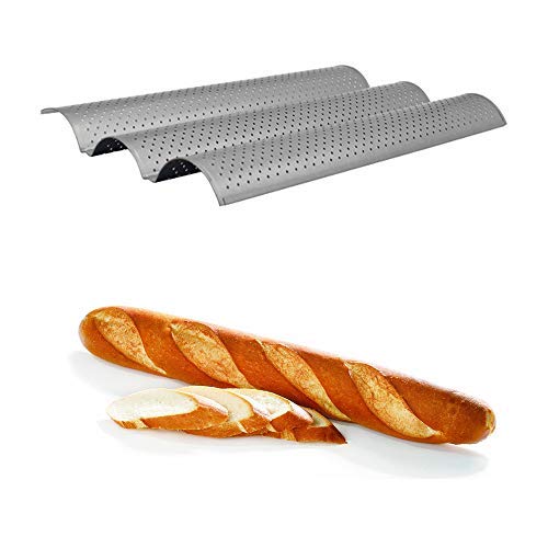 ETiME Teglia per Baguette Francese Stampo con 3 Baguette Antiaderente Perforato Teglia per Baguettes Viene (Argento)