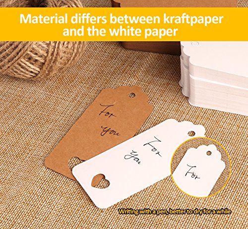 Etiquetas de Papel Kraft Etiquetas de Regalo Etiquetas de Boda con 60 Metros de Cuerda de Yute (200pack)
