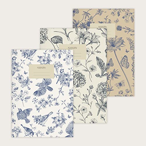 Etmamu 143 - Set di 3 quaderni per appunti, formato A5, motivo: uccellini e farfalla, 32 fogli a righe