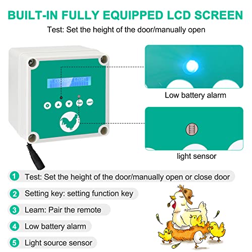 ETE ETMATE Porta Pollo Automatica Con Patta Pollo | Apriporta per pollaio con timer e sensore di luce | Batteria e solare e alimentato dalla rete | Porta del pollaio per la custodia sicura dei polli