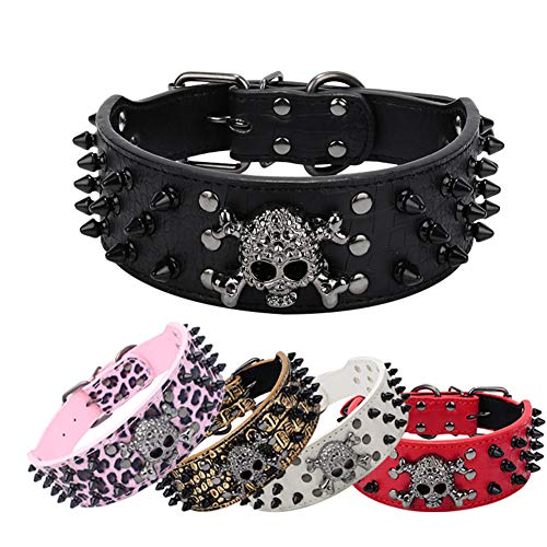 ETOPARS Collare per Cani con Teschio Rivetto, Collare per Cani Regolabile, Collare per Cani in Ecopelle con Rivetti a Punta, Collare per Cani di Taglia Media e Grande