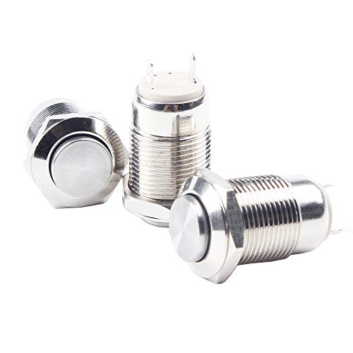 ETOPARS 5 pezzi 12mm Metallo Interruttore a Pulsante Interruttore a Levetta con Chiusura a Pulsante Impermeabile ON OFF 2Pin 3A 250V Testa Alta