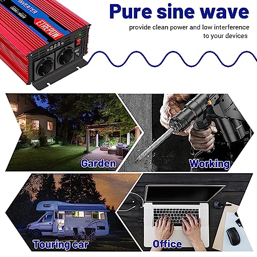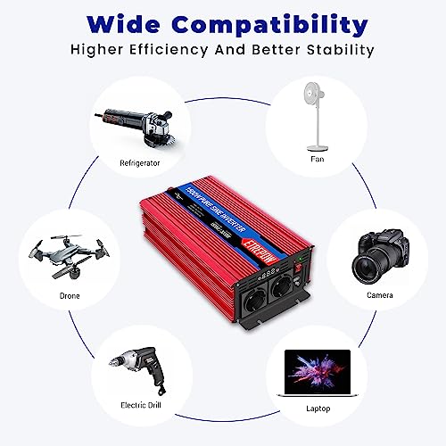 【ETREPOW Inverter Onda Pura】1500 watt di potenza in uscita a onda sinusoidale pura e 3000 watt di potenza di picco, converte l'alimentazione a 12 V CC in onda sinusoidale pura come l'alimentazione di rete, rendendola più adatta per l'elettronica sensibile e altri elettrodomestici (ad Telefoni cellulari, tablet, computer portatili, macchine fotografiche, trapani elettrici...).