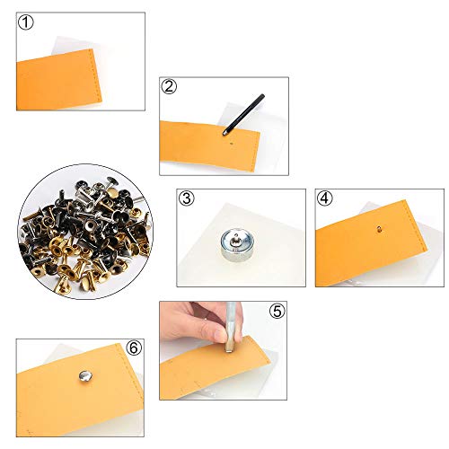【Strumenti eccellenti】Metallo kit di rivetti in pelle sono facili da montare per la perforazione. Appoggia la pelle da forare su una superficie piana. Usa uno strumento per praticare i fori. Quindi tagliare i rivetti attraverso i fori e batterli con un martello per appiattirli.