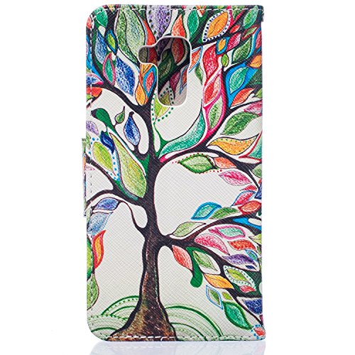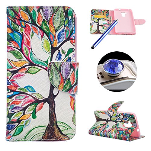 Etsue cassa del raccoglitore per il Huawei Honor 5C, colorato disegno dipinto colorato abbastanza albero modello in pelle caso della copertura posteriore, cassa protettiva di stile del libro in folio con funzione di slot per scheda di cavalletto chiusura magnetica+Blu Stylus Pen e scintillio di Bling Diamond Dust Plug colora casuale-Albero variopinto