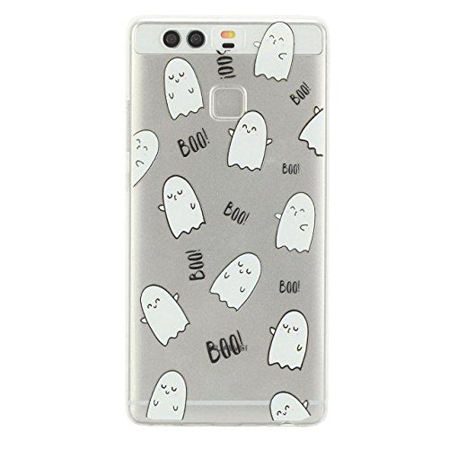 Etsue Custodia Huawei P9 Trasparente,Colorate Dipinto Modello Con Disegni,Huawei P9 Cover in Silicone Tpu Flessible Sottile Antiscivolo e Antigraffio Protettivo Cover Bumper Case Per Huawei P9+Blu Stylus Pen e scintillio di Bling Diamond Dust Plug colora casuale-Boo