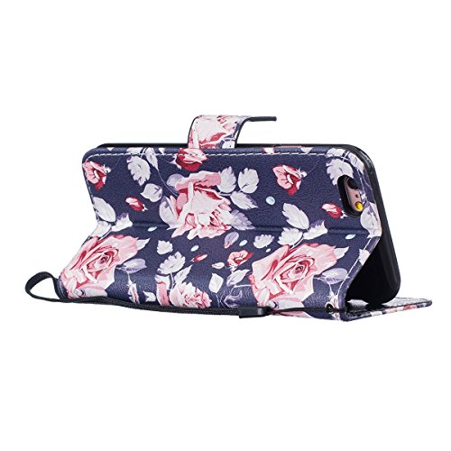 Etsue Custodia iPhone 6 Plus in Pelle Con Cinghia,iPhone 6S Plus Cover Floreale,Colorate Dipinto Stand Portafoglio Case Retro Vintage Pu Morbido Flessible Sottile Antigraffio e Antiscivolo Flip Copertura Folio Leather Wallet Cover Libro Protettiva Case Bumper Con Magnetica Chiusura/Card Slot Funzione Per iPhone 6 Plus/6S Plus 5.5+Blu Stylus Pen e scintillio di Bling Diamond Dust Plug colora casuale-Roses