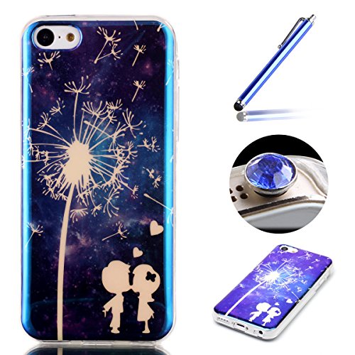 Etsue Huawei P8 Lite silicone gel per cellulare, Luminous Glow in the Dark cover per Huawei P8 Lite, - Custodia morbida Case per Huawei P8 Lite, ultr adünnen antigraffio Custodia in silicone TPU Soft Gel Case Cover Custodia Retro Custodia protettiva Custodia per Huawei P8 Lite + 1 x GLITTER spina antipolvere + 1 x blu pennino touch (ancora e strisce, cuore) Blue Light,Löwenzahn Liebhaber Herz iPhone 5c