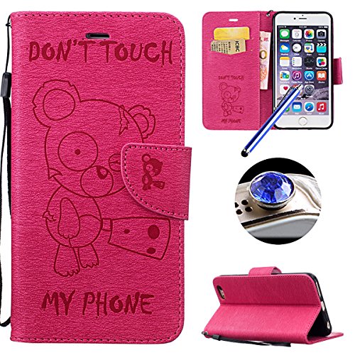 Etsue iPhone SE Cover,iPhone 5S Custodia in Pelle Portafoglio Lusso Style Carina Lovely Orso Modello Artificiale Leather Pu Puro Wallet/Libro/Flip Antigraffio Bumper Protettiva Case Cover Morbida Flessible Tpu Interno Caso Con Magnetica Chiusura/Card Slot/Supporto di Stand Per iPhone 5/5S/SE+Blu Stylus Pen e scintillio di Bling Diamond Dust Plug colora casuale-Rose Rossa