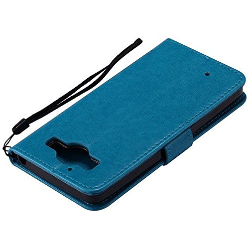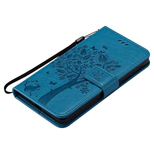 Etsue Microsoft Lumia 950 Custodia Pelle,Microsoft Lumia 950 Cover,Lusso Leather Flessible Morbida Puro Pu Wallet/Libro/Flip Case Con Cinghia Disegno Elegante Carina Semplice Modello Albero&Gatto Creativa Chiusura Magnetica Con Stand Folio,Slim Sottile Antiurto Portafoglio in Pelle Originale Antigraffio Protettiva Cover Case Bumper Con Supporto e Slot per schede Funzione+Blu Stylus Pen e scintillio di Bling Diamond Dust Plug colora casuale-Blu@