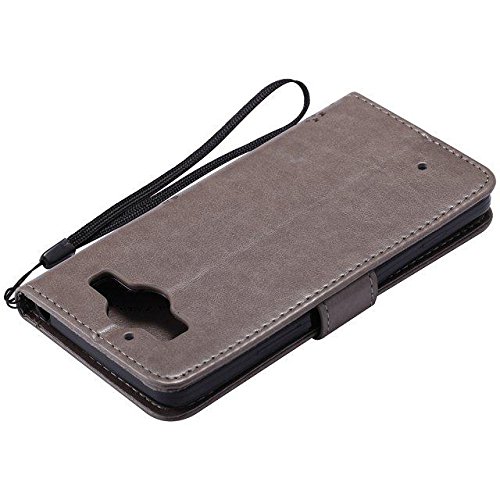 Etsue Microsoft Lumia 950 Custodia Pelle,Microsoft Lumia 950 Cover,Lusso Leather Flessible Morbida Puro Pu Wallet/Libro/Flip Case Con Cinghia Disegno Elegante Carina Semplice Modello Albero&Gatto Creativa Chiusura Magnetica Con Stand Folio,Slim Sottile Antiurto Portafoglio in Pelle Originale Antigraffio Protettiva Cover Case Bumper Con Supporto e Slot per schede Funzione+Blu Stylus Pen e scintillio di Bling Diamond Dust Plug colora casuale-Grigio@