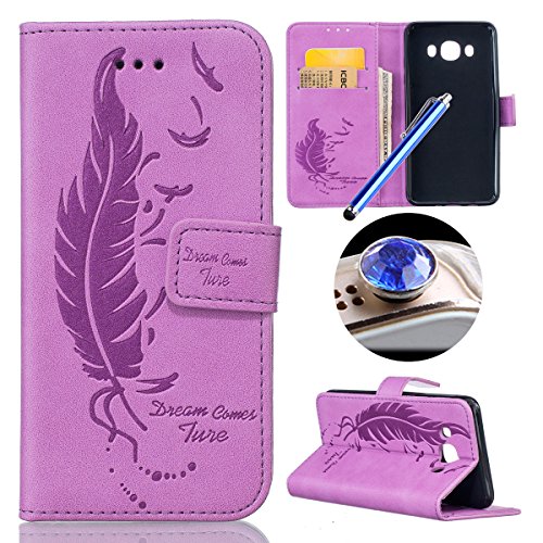 Etsue Samsung Galaxy J5 2016 Cover,Samsung Galaxy J5 2016 Custodia in Pelle,Lusso Style Elegante/Bella/Semplice Puima Foglia Modello Artificiale Leather Pu Puro Wallet/Libro/Flip Protettiva Case Cover Con Magnetica Chiusura/Card Slot/Supporto di Stand Per Samsung Galaxy J5 2016+Blu Stylus Pen e scintillio di Bling Diamond Dust Plug colora casuale-