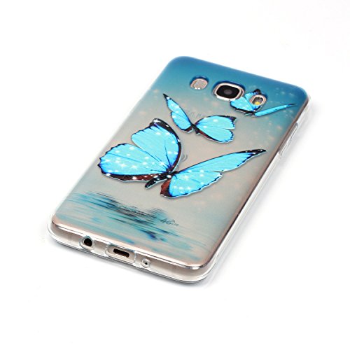Etsue Samsung Galaxy J5 Cover Tpu,Samsung Galaxy J5 2016 Custodia Trasparente,Morbido Soft Gel CoverBella/Creativo/Fresco Modello in Silicone Gomma Antigraffio Protettivo Case Cover Per Samsung Galaxy J5 2016+Blu Pennino e scintillio di Bling Diamond Dust Plug colora Casuale