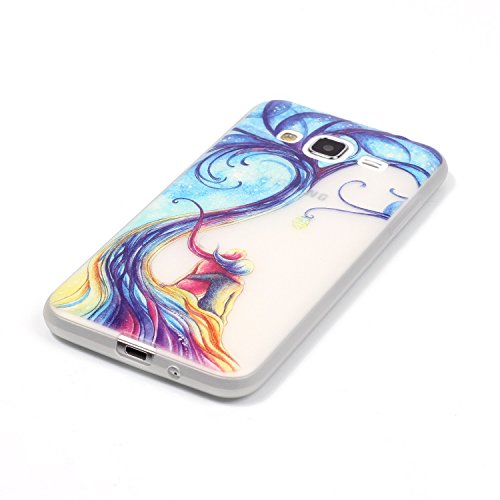 Etsue Samsung Galaxy J3 2016 Custodia,Samsung Galaxy J3 2016 Cover Tpu,Samsung Galaxy J3 2016 Cover Trasparente,Creativo/Divertente/Fresco Nottilucenti Tpu Style Bella Modello Soft Gel Morbido Gomma in Silicone Anti Scratch Protective Case Cover Per Samsung Galaxy J3 2016+Blu Pennino e scintillio di Bling Diamond Dust Plug colora Casuale-Lovers Albero