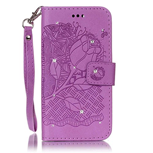 Etuse Custodia Per Samsung Galaxy Grand Neo Plus I9060 I9082,Samsung Galaxy Grand Neo Plus I9060 I9082 Cover Viola PU,Samsung Galaxy Grand Neo Plus I9060 I9082 Custodia in Pelle Diamante,Puro Color Portafoglio Leather PU Antigraffio Protettivo Case Cover Con Cinghia Divertente Cranio Strass Bling Glitter Sparkle Ultra Sottile Pu Wallet Case Bumper di Protezione A Libro Flip Case Con Stand Folio Magnetica Chiusura e Card Slot+Blu Stylus Pen e scintillio di Bling Diamond Dust Plug colora casuale