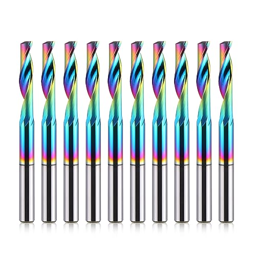 EU_HOZLY Fresa per frese a flauto singolo CNC, gambo da 1/8", diametro di taglio da 1/8", lunghezza di taglio 15 mm (0,59"), fresa per rivestimento DLC per alluminio, confezione da 10