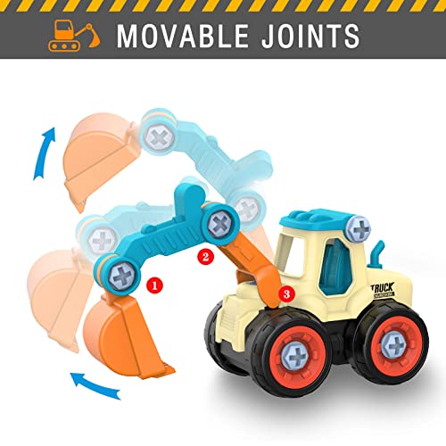 Eucomir 4 in 1 Assemblaggio Veicolo da Costruzione Giocattolo, Ruspa, Escavatore, Rullo Stradale, Demolitore di Calcestruzzo Escavatore, Giocattoli per Veicoli di Ingegneria per 2 Anni Bambini