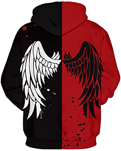 EUDOLAH Felpa Casual Uomo Ragazzo con Cappuccio e Manica Lunga Pullover Fantasia con Stampa 3D(0-1-Ala,S-M)